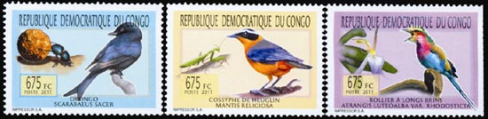 RDC086 Oiseaux et insectes 3v 7.50 €